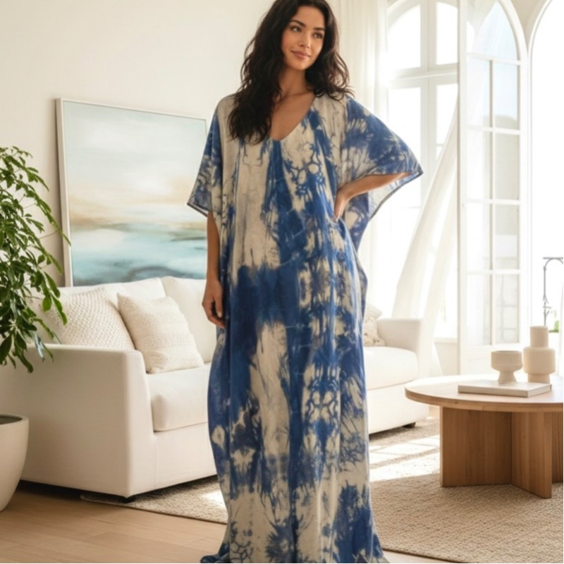 100% Silk Kaftan Dress – Oversized Tie-Dye Loungewear & Beach Cover-Up