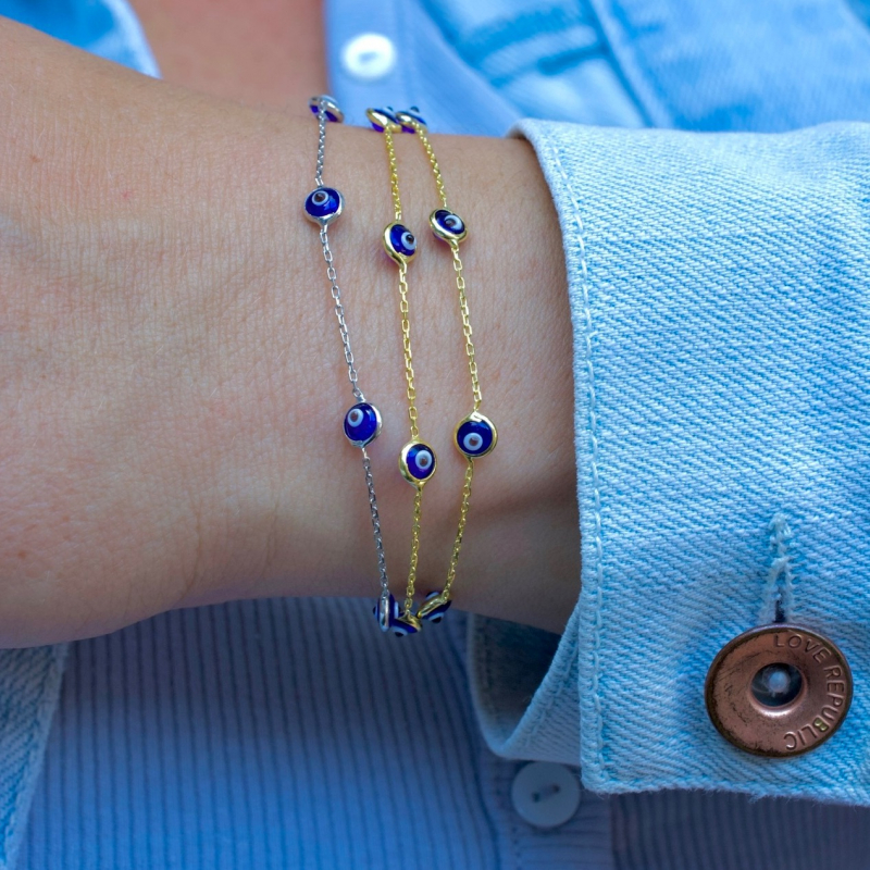 Beads evil eye bracelet/ sterling silver evil eye bracelet