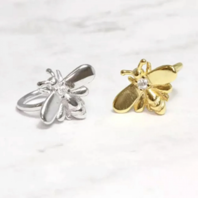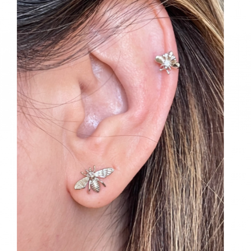 Small bee cz cuff earring/ bee studs