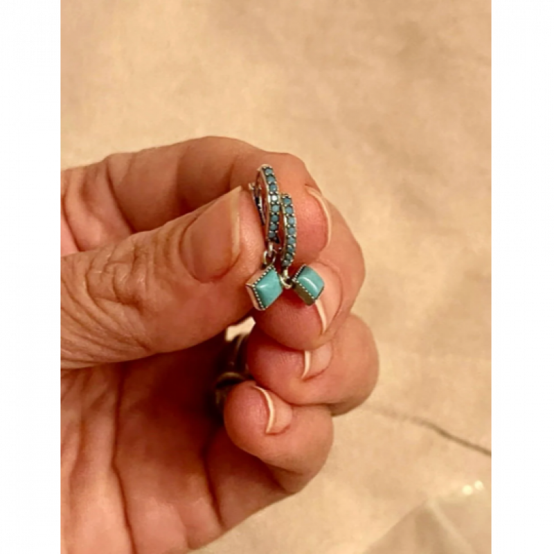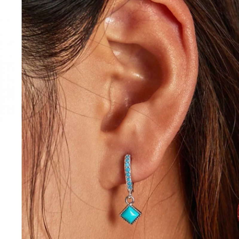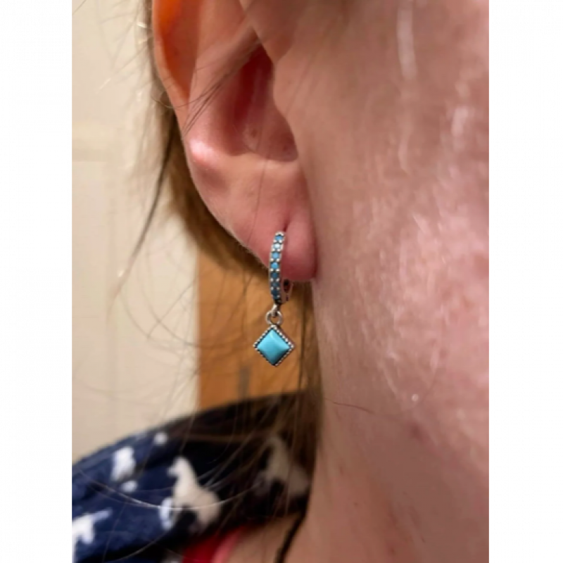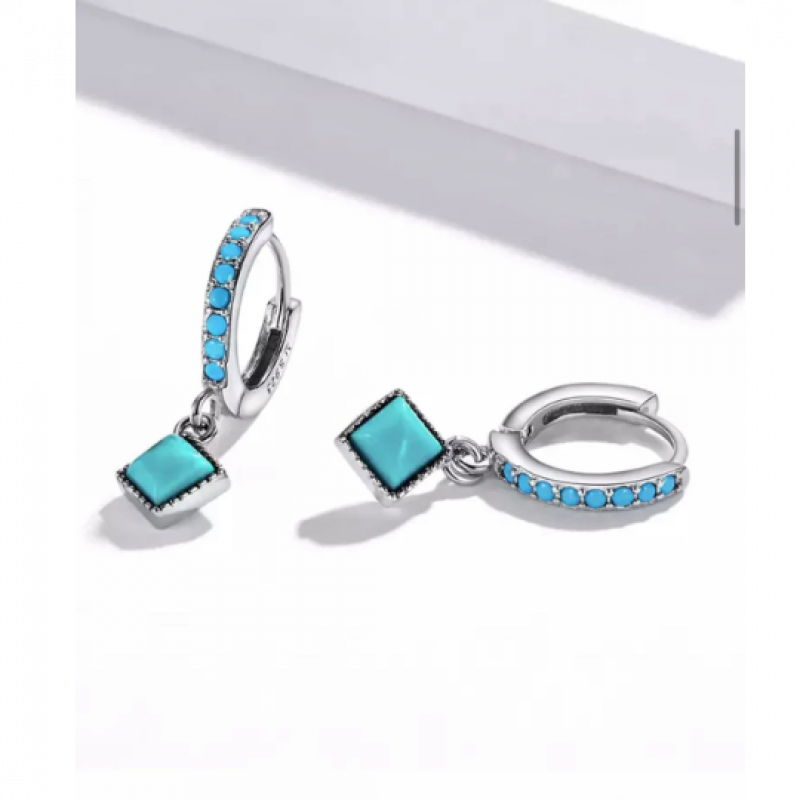 Turquoise earrings. Simple style twist ear buckles with square turquoise are fashionable and versatile. Beaded edging is full of details. Measurements : Size: 21*0.7 mm.
