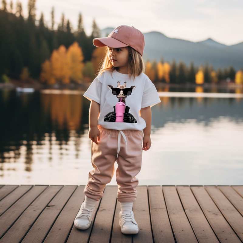 Looking for an adorable kids t-shirt that’s both stylish and fun? This cute giraffe t-shirt for kids is the perfect choice! Featuring a bold black DTF (Direct to Film) print of a playful giraffe sipping from a pink cup, this unique design is sure to stand out. Whether your little one loves animals or you’re searching for the perfect giraffe-themed t-shirt, this tee is a must-have.