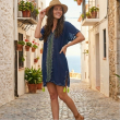 Lightweight beach coverup. Dark blue embroidered kaftan, perfect for a day at the pool, stroll around local farmers market or your go to vacation dress. This coverup is easy to wear, and very lightweight to pack. Pair it with cute strappy sandals and a hat.
