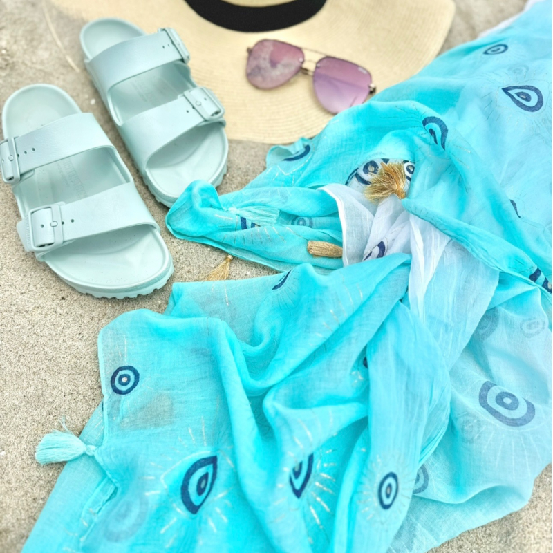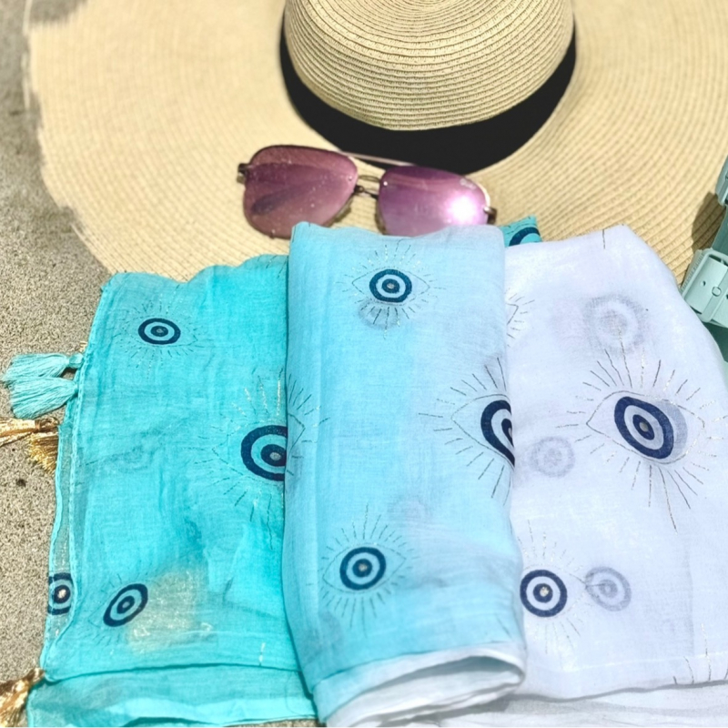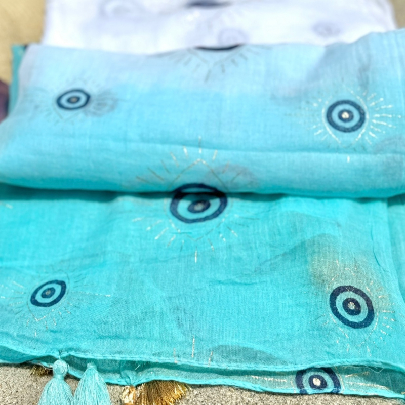 Hand painted evil eye beach pareo.