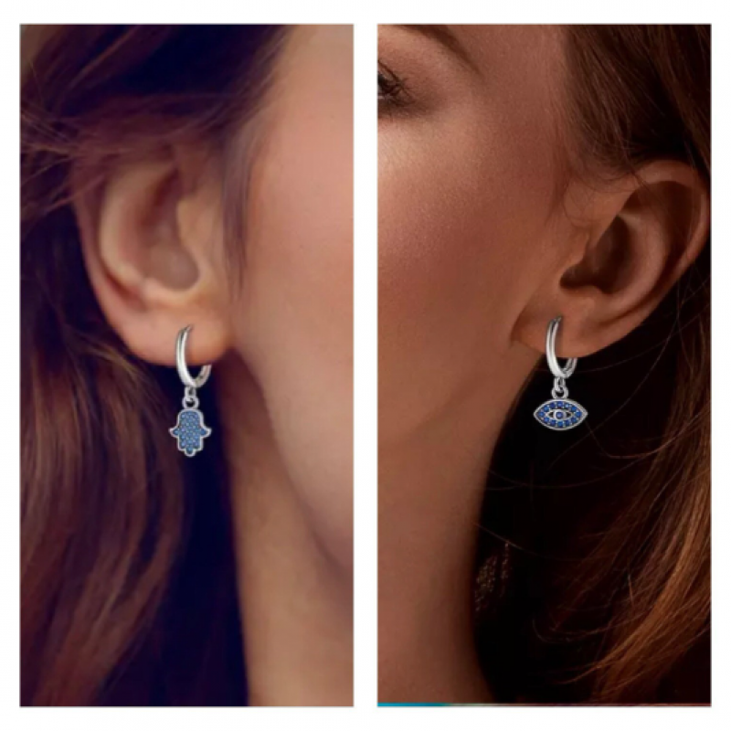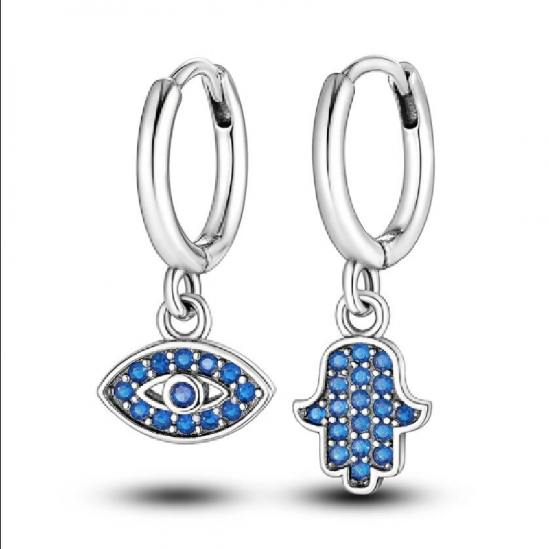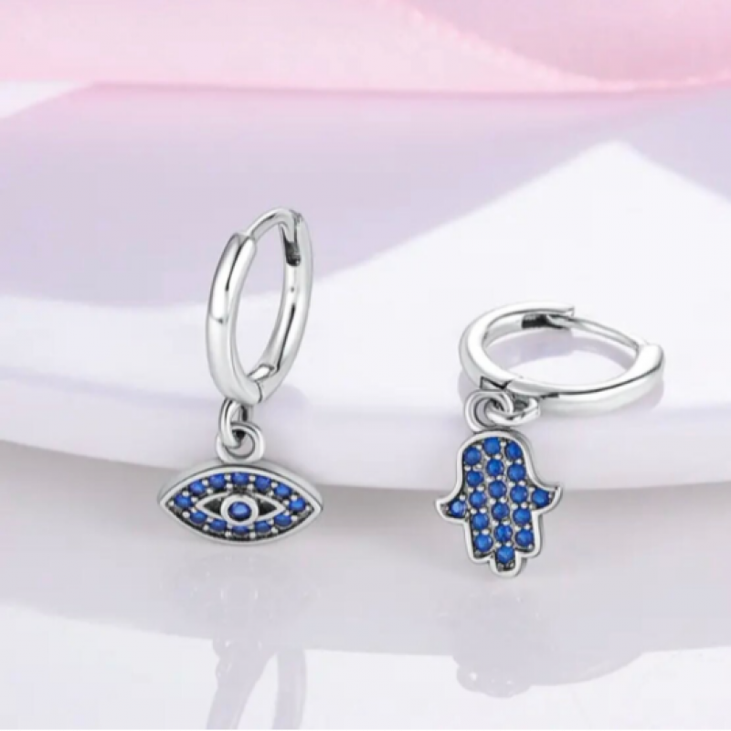 Protect earrings. Evil Eye earrings with CZ Stones. Blue & White Cubic Zirconia Evil Eye/ Hamsa earrings.