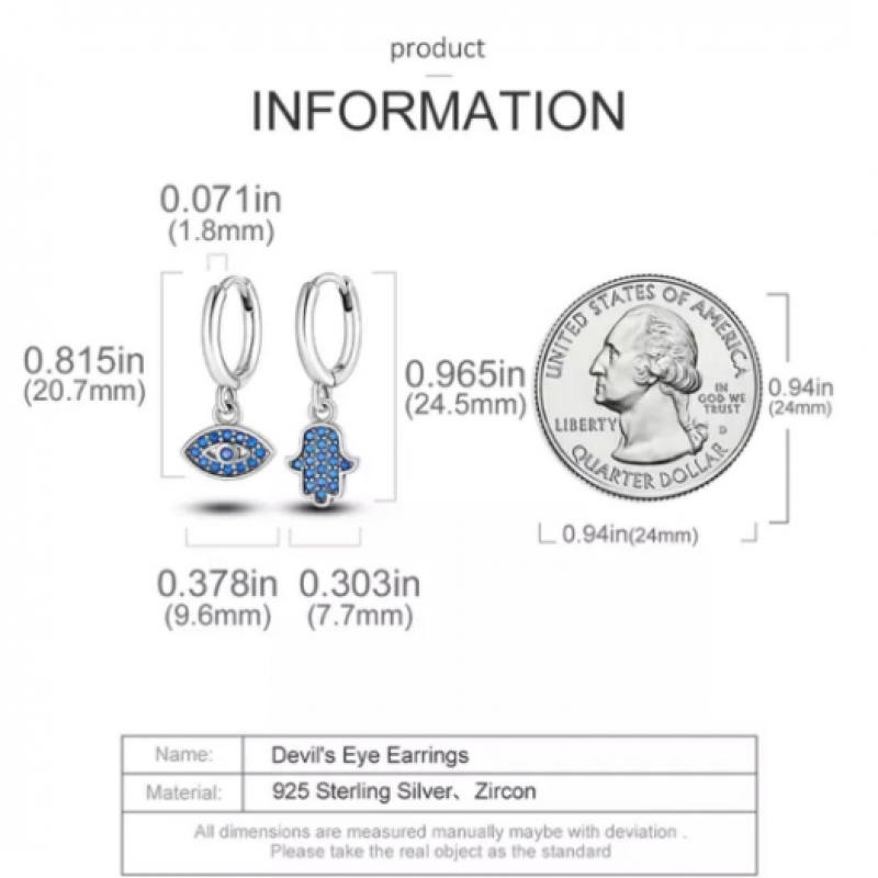 measurements: Hamsa 20.5mm x 8mm, evil eye 20.5mmx 9mm