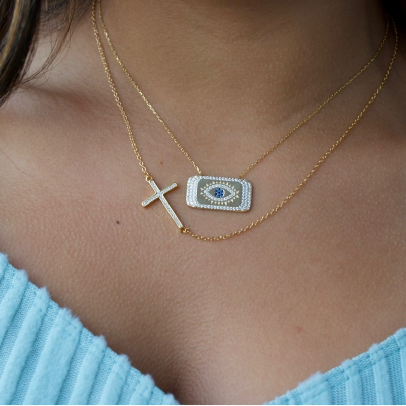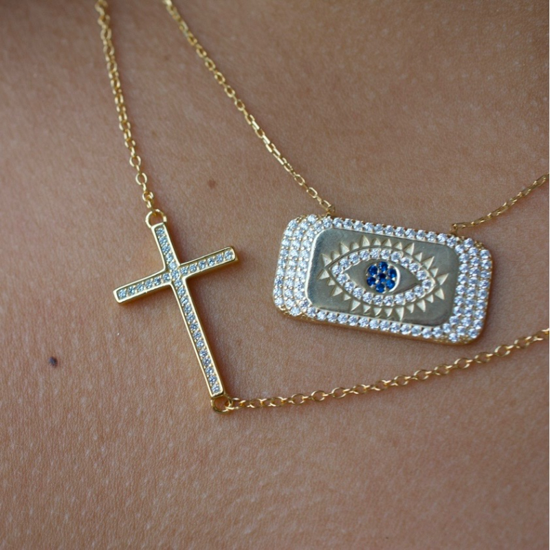 925 sterling silver gold plated side cross.