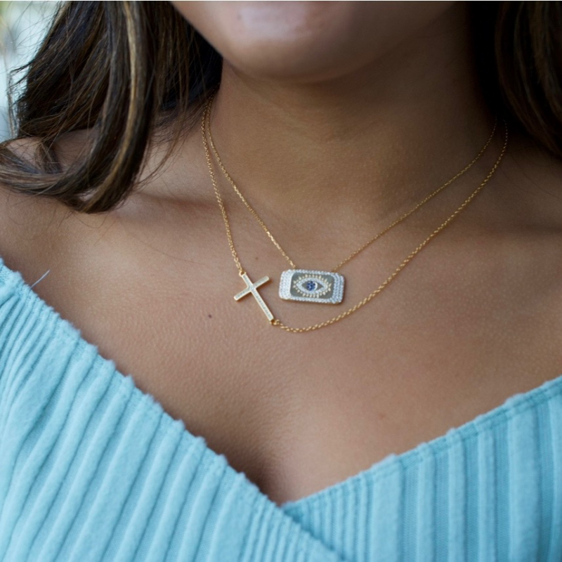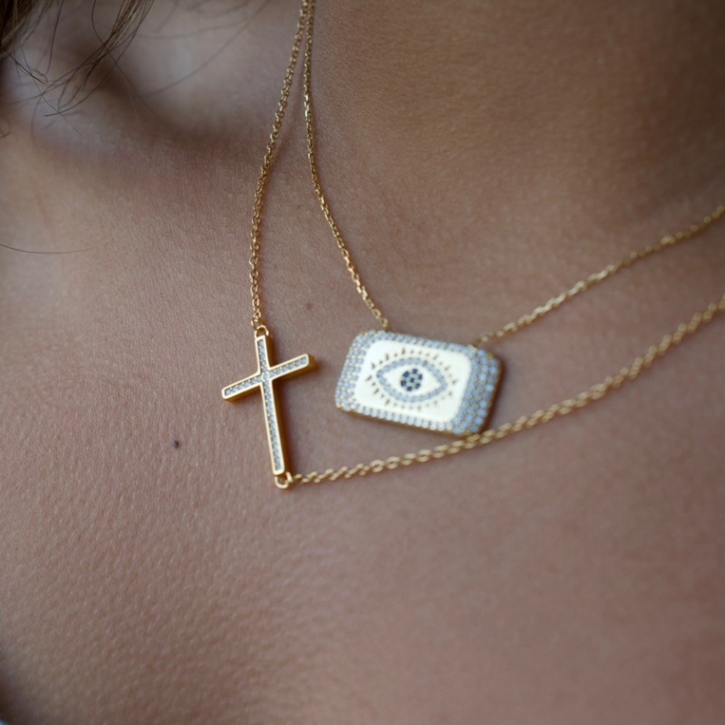 Side cross gold necklce.