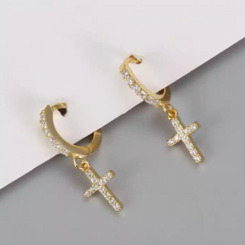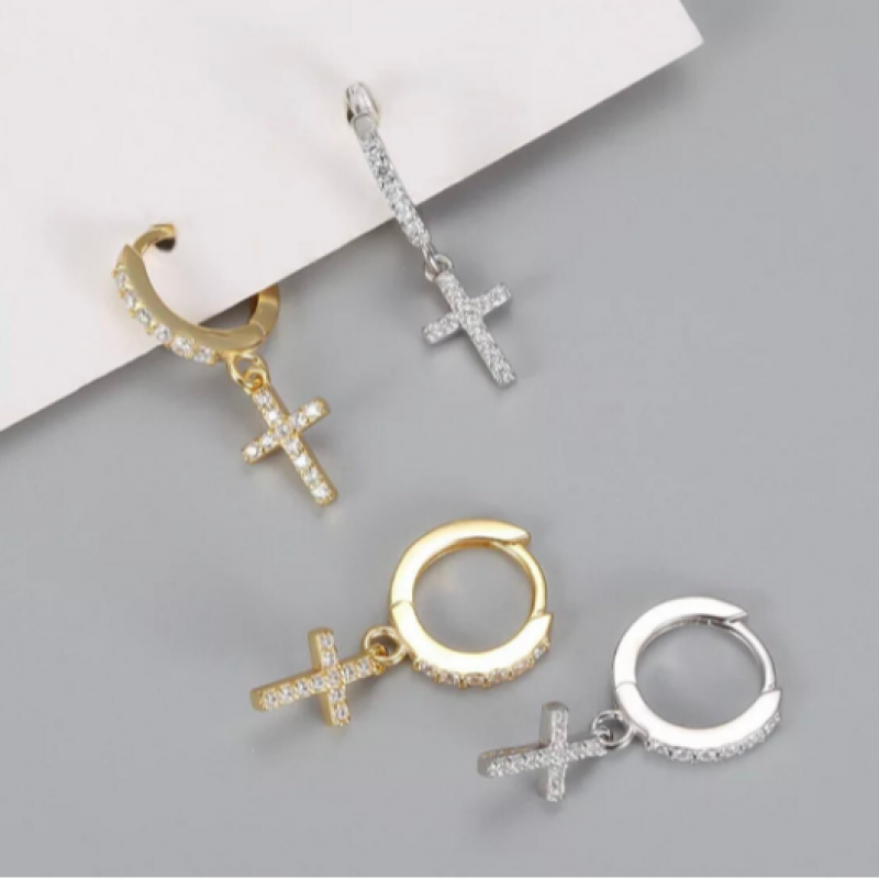 Hoop cross earrings/men cz hoop earrings / unisex earrings/ 925 Sterling Silver earrings