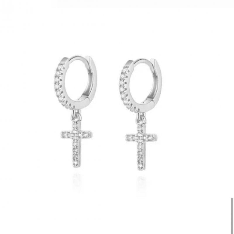 Hoop cross earrings. Unisex hoop cross earrings. 925Sterling Silver