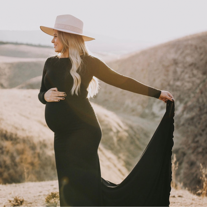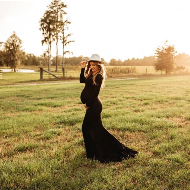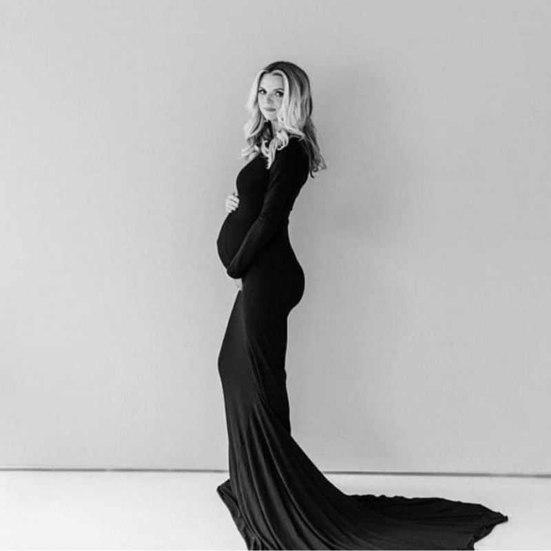 This maternity dress for photoshoot is made of a soft, stretchy jersey material.