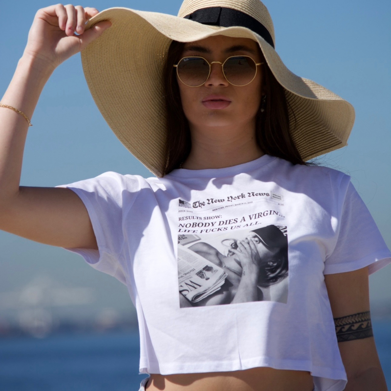 Nobody Dies a Virgin crop tee, Trendy Newspaper crop tee, Viral Newspaper T0shirt