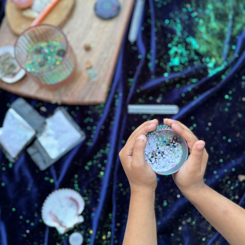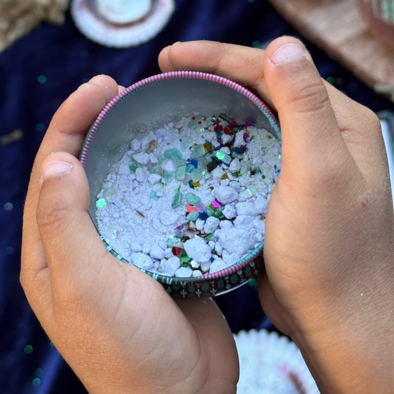 Ocean Potion Kit for kids opens the doors to imaginative play. Curious little hands will love opening a magical box and mixing herbs and flowers with glitter and fizz. Just add water and let your little one create magic. Beautiful potion gift for your little explorer.
