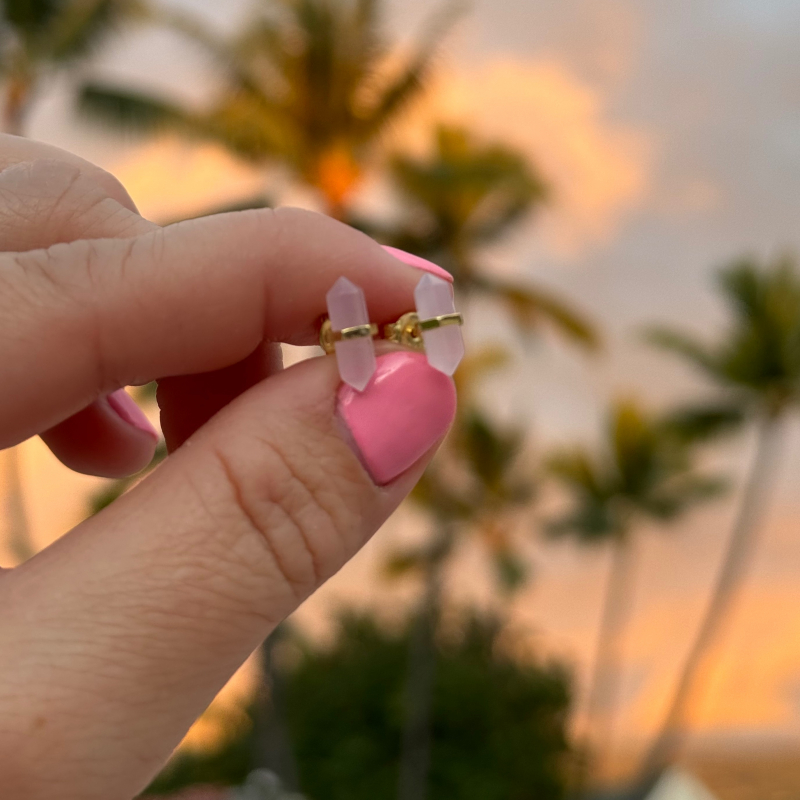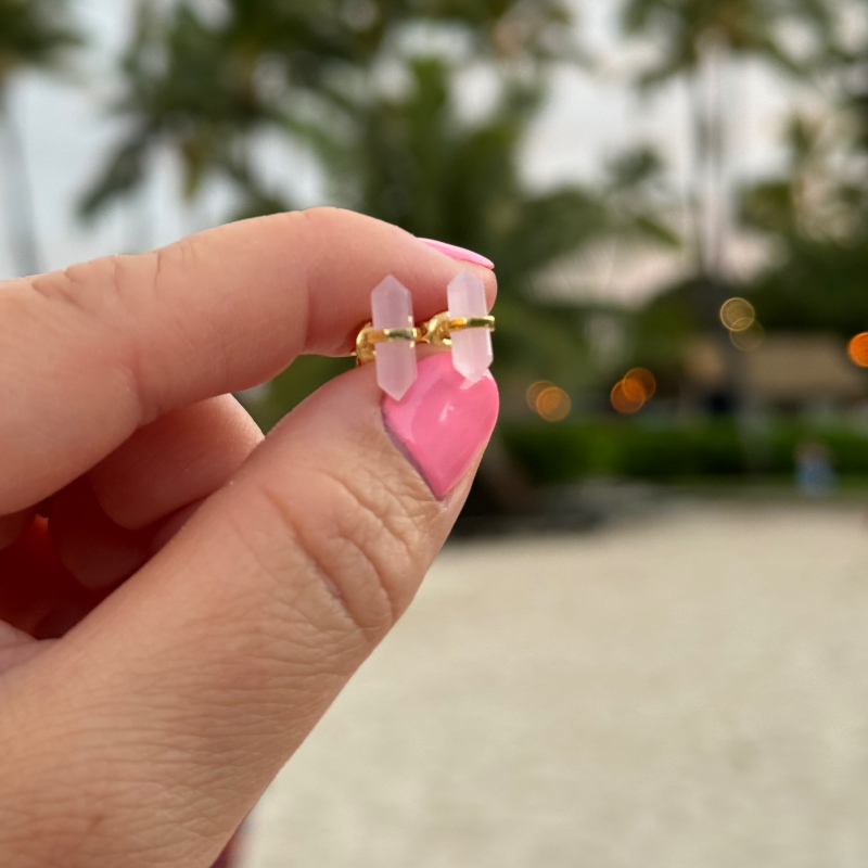 Small pink quartz earrings. Sterling silver with 10k gold plated studs. Push back studs.