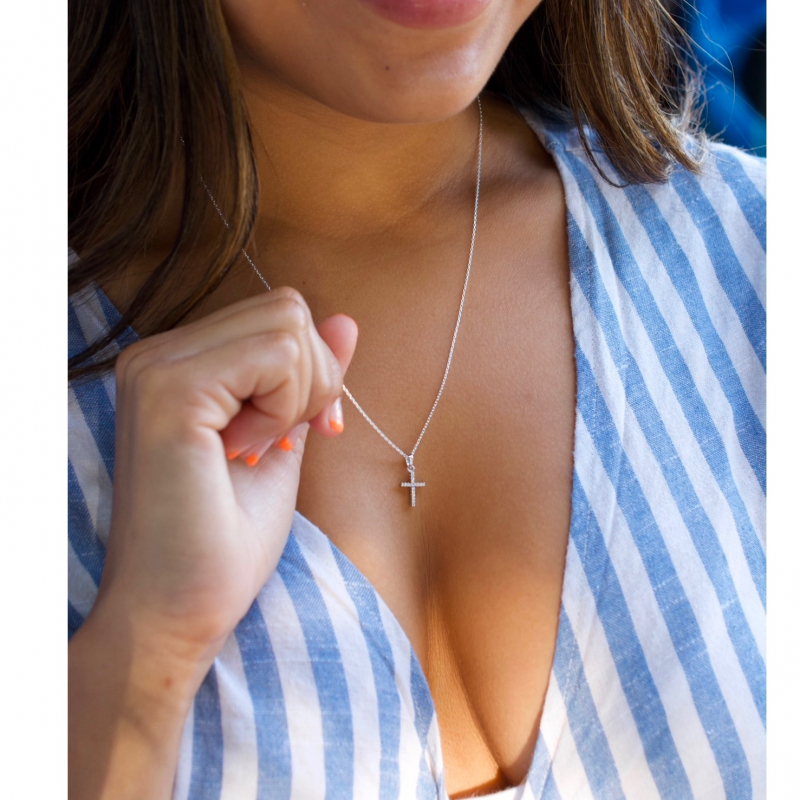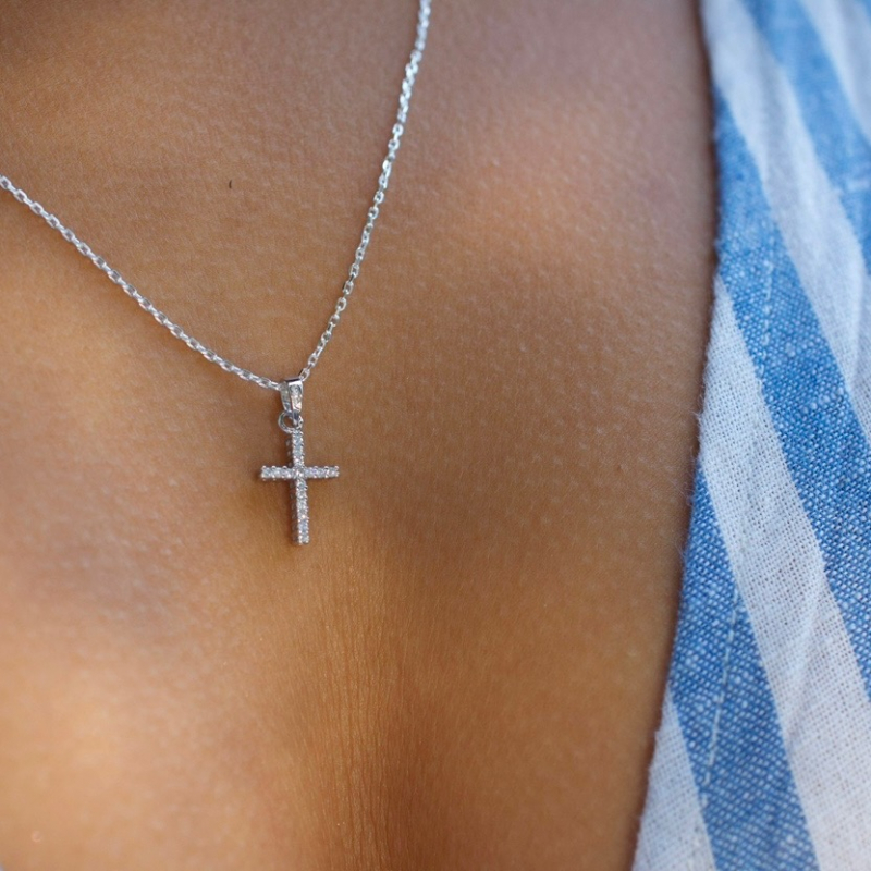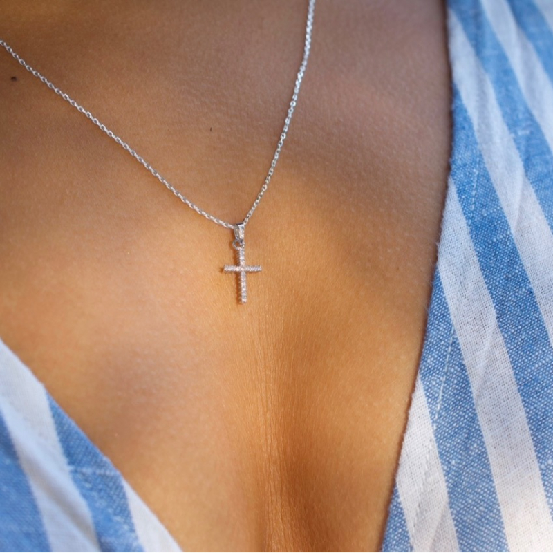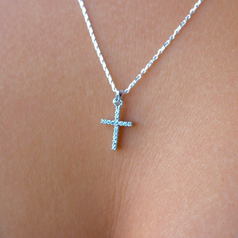 Small gold cross, small silver cross, small cross necklace, cross necklace with cz